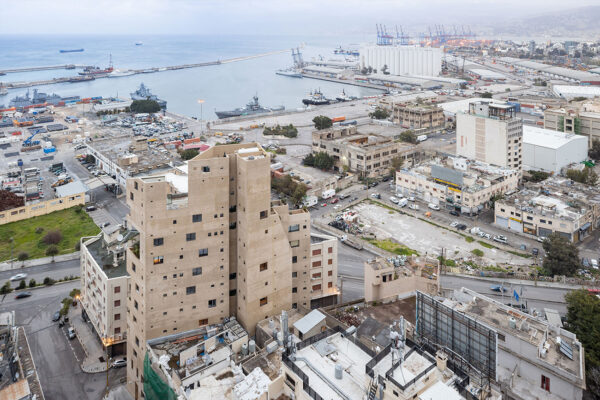 Lina Ghotmeh Architecture – Stone Garden: προσέξτε την εγγύτητα με τα σιλό του λιμανιού.