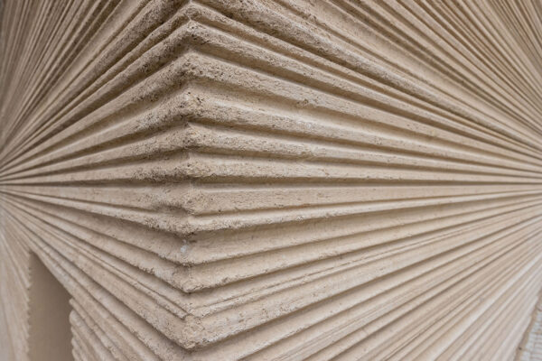 Lina Ghotmeh Architecture – Stone Garden: λεπτομέρεια του φινιρίσματος της όψης του κτιρίου.
