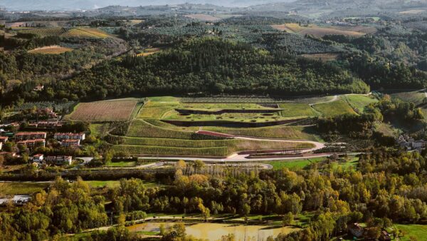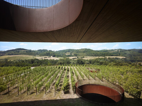 Στα μισά του δρόμου ανάμεσα στην Φλωρεντία και τη Σιένα, βρίσκεται ένα εκ των οινοποιείων της Antinori: το Antinori nel Chianti Classico. Θα περίμενε κανείς ότι μια τέτοιου μεγέθους μονάδα θα είχε οριστικά διαταράξει την αρμονία του τοπίου της Τοσκάνης, καθώς με επιφάνεια 49.000 τετραγωνικών μέτρων ξεπερνά σε έκταση το χωριό Bargino που βρίσκεται δίπλα του. Όμως οι αρχιτέκτονες της Archea Associati χειρίστηκαν το πρόβλημα με μαεστρία, βυθίζοντας το οινοποιείο στο έδαφος σε δύο κλιμακωτά επίπεδα, με τους αμπελώνες να περνούν σαν μια πράσινη κουβέρτα από πάνω του, καμουφλάροντάς το και διατηρώντας σταθερή θερμοκρασία στα κελλάρια του. Οριζόντιες σχισμές και κυκλικές οπές εξασφαλίζουν τον φωτισμό και αερισμό του συγκροτήματος, ενώ φινιρίσματα από τερακότα και προδιαβρωμένο χάλυβα Corten υπογραμμίζουν το γαιώδη, χθόνιο χαρακτήρα του. Αν και κάτω από τις κυματοειδείς φυτεμένες στέγες ο επισκέπτης θα βρει χώρους δοκιμής και αγοράς κρασιού, εστιατόριο, βιβλιοθήκη και αμφιθέατρο, είναι οι πολλαπλές θέες προς το τοπίο της Τοσκάνης αυτές που δεν τον αφήνουν τελικά να φύγει. Μαζί με μια ελαφρά ζαλάδα από το chianti.