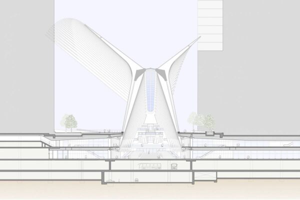 H εγκάρσια τομή του σταθμού. (πηγή: Santiago Calatrava Architects & Engineers)