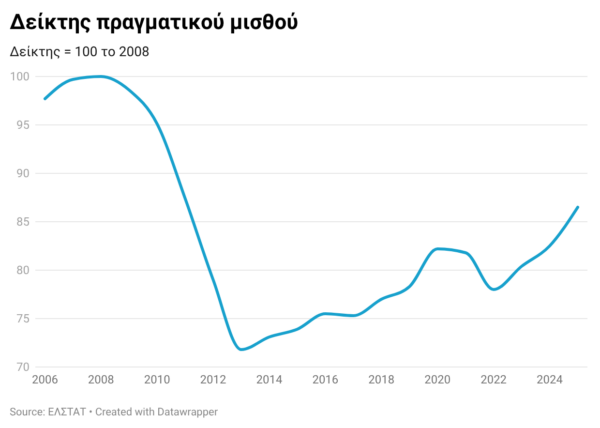 Μετά το 2008, η κρίση και οι θεσμικές αλλαγές —μεταξύ άλλων η αποδυνάμωση των συλλογικών συμβάσεων και η μείωση του κατώτατου μισθού— οδήγησαν στην απότομη πτώση των αποδοχών. Σε πραγματικούς όρους, ο μέσος μισθός μειώθηκε σχεδόν κατά 30% μεταξύ 2008 και 2013. Η ανάκαμψη που ακολούθησε έχει ανακτήσει μόλις το μισό αυτής της απώλειας.