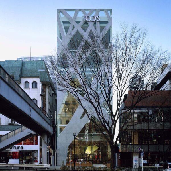 Στη λεωφόρο Omotesando, δίπλα στις συστοιχίες δέντρων zelkova που τη διατρέχουν, βρίσκεται το κεντρικό κατάστημα της Tod’s, σχεδιασμένο από τον Toyo Ito. Είναι ένα κτίριο επτά ορόφων και συνολικού εμβαδού 2.600 τετραγωνικών μέτρων, χτισμένο σε ένα πολύ μικρό οικόπεδο μόλις 500 τετραγωνικών. Λόγω στενότητας χώρου, ο Ιto έπρεπε να βρει τον τρόπο να στηρίξει το κτίριο χωρίς υποστυλώματα που θα περιόριζαν ακόμα περισσότερο το μικρό εμβαδόν των ορόφων. Μαζί, έπρεπε να βρει τον τρόπο να σχετιστεί με την ιστορία της Tod’s. Το δικό του tigersprung ήταν ένα άλμα προς δύο κατευθύνσεις της αρχέγονης φύσης: καταρχάς προς το φυσικό τοπίο που προϋπήρχε της αστικοποίησης, αυτό που οι συστοιχίες zelkova κρατούν ακόμα ζωντανό, και εμμέσως προς τον αρχέγονο, ζωντανό και οργανικό χαρακτήρα του δέρματος ως συστατική πρώτη ύλη της Tod’s. Το πλέγμα των διασταυρούμενων κλαδιών αποτέλεσε την έμπνευση για έναν δομικό εξωτερικό σκελετό από οπλισμένο σκυρόδεμα, που φέρει όλο το βάρος του κτιρίου, επιτρέποντας στις πλάκες των ορόφων να εκτείνονται σε μήκος 10-15 μέτρων χωρίς εσωτερικές κολώνες. Ανάμεσα από τα γεωμετρικά, οργανικά κενά των κλάδων σκυροδέματος της όψης, βλέποντας προς τα δέντρα, ο Ιάπωνας επισκέπτης του οίκου διατηρεί ακέραια τη σύνδεσή του με την αρχέγονη φύση χωρίς ρετρό αναφορές, αλλά μέσω μιας απροκάλυπτα μοντέρνας χωρικής εμπειρίας. Ένα αστικό αρχιτεκτονικό δάσος, άλλο ένα δείγμα του modus operandi του μεγάλου Toyo Ito.