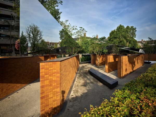 102.000 κόκκινα τούβλα και ένας πολύεδρος καθρέφτης “εις μνήμην”. (φωτογραφία: Kees Hummel / dezeen)