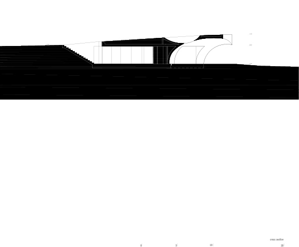 Η οροφή του υπόσκαφου τμήματος μεταγράφει τις καμπύλες του λόφου και ενώ παραμένει αυστηρά κάτω από αυτόν δεν παύει να υποδεικνύει με το σχεδιασμό του τη σχέση του με την αρχιτεκτονική της εποχής μας. Δείχνοντας έτσι ότι ο τρόπος να συνδιαλλαγεί η σύγχρονη αρχιτεκτονική με την παλαιότερη, δεν είναι η στείρα μίμηση της μορφολογίας της αλλά ο διάλογος μαζί της. Αν θέλετε ξαναδιαβάστε αυτή την πρόταση, γιατί εξηγεί πολλές από τις παθογένειες της αρχιτεκτονικής σήμερα. Και στην Ελλάδα.
